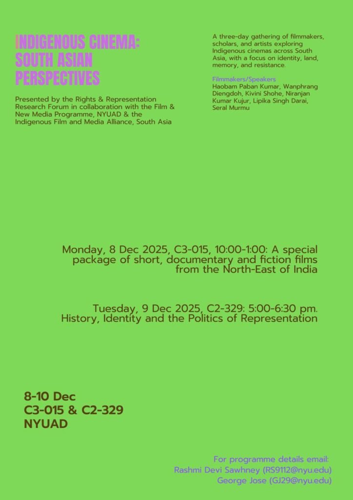 NYU Abu Dhabi (NYUAD) में आयोजित तीन दिवसीय अंतरराष्ट्रीय कार्यक्रम “Indigenous Cinema: South Asian Perspectives” में दक्षिण एशिया के आदिवासी फ़िल्मकारों, शोधकर्ताओं और कलाकारों की भागीदारी के साथ आदिवासी सिनेमा, स्मृति, भूमि, भाषा और प्रतिनिधित्व पर गहन संवाद होगा। यह आयोजन Rights & Representation Research Forum द्वारा Film & New Media Programme, NYUAD तथा Indigenous Film and Media Alliance, South Asia के सहयोग से आयोजित किया जा रहा है।