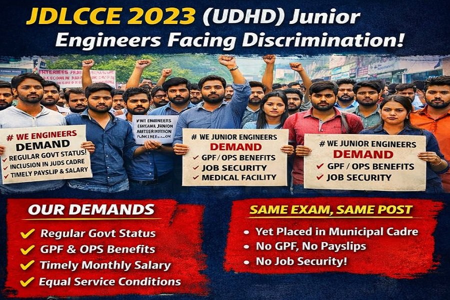 झारखंड संयुक्त डिप्लोमा स्तरीय संयुक्त प्रतियोगिता परीक्षा (JDLCCE-2023) के माध्यम से चयनित 250 से अधिक जूनियर इंजीनियरों ने सेवा शर्तों में असमानता को लेकर राज्य सरकार का ध्यान आकृष्ट कराया है। इसके लिए अभियांताओं ने आज ट्विटर अभियान चलाया है, जिसके तहत देशभर में अभियंता मांगों के समर्थन सोशल मीडिया X पर ट्विट कर रहे हैं। अभियंताओं का आरोप है कि एक ही परीक्षा और एक ही मेरिट लिस्ट से चयन होने के बावजूद नगर विकास एवं आवास विभाग (UDHD) में नियुक्त इंजीनियरों के साथ भेदभाव किया जा रहा है।